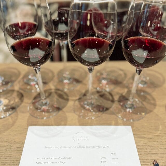 Igår anordnade vi en provning av den nya årgången av Rose & Arrows exceptionella Pinot Noir-viner på At Six. Medan Ingrid Cutler och Johan Lagergren berättade om vinerna och det storslagna projektet bakom dem, fick deltagarna chansen att prova åtta olika Pinot Noir-viner samt Rose & Arrows Chardonnay.