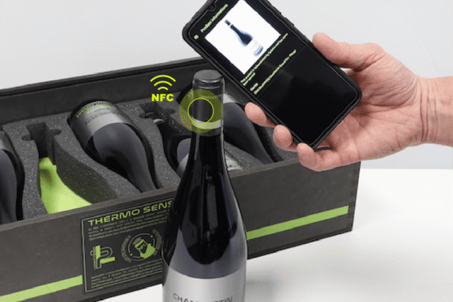 Det finns redan några vinmakare som använder sig av detta. T.ex. Laurent Ponsot som har tagit fram en NFC-kork som kopplas till en app och som garanterar vinflaskans äkthet och ger information om hur flaskan lagrats. Har den lagrats på fel sätt lyser en diod på korken röd, om allt är rätt lyser den grönt.